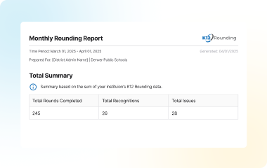 Start rounding, recognizing, and analyzing, using real-time insights for district improvement.