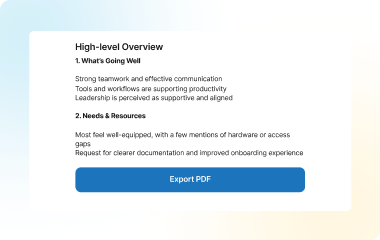 Surface key themes, trends, and priorities across schools, departments, and stakeholder groups.